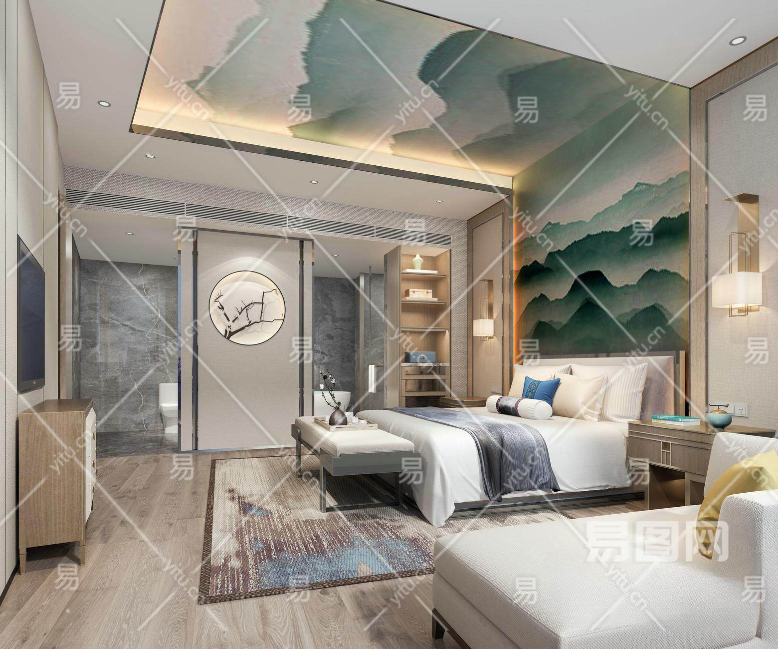 当前的位置:首页 > 3D模型 > 酒店空间 > 客房 > 新中式酒店客房 电视柜 床头柜