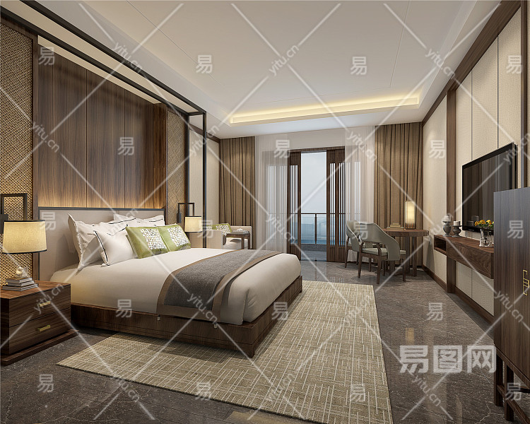 中式酒店客房 酒店包间 酒店卫生间 酒店大床房 卧室