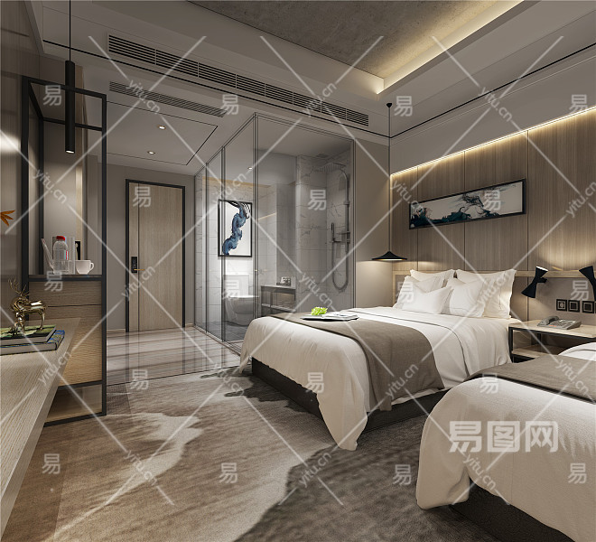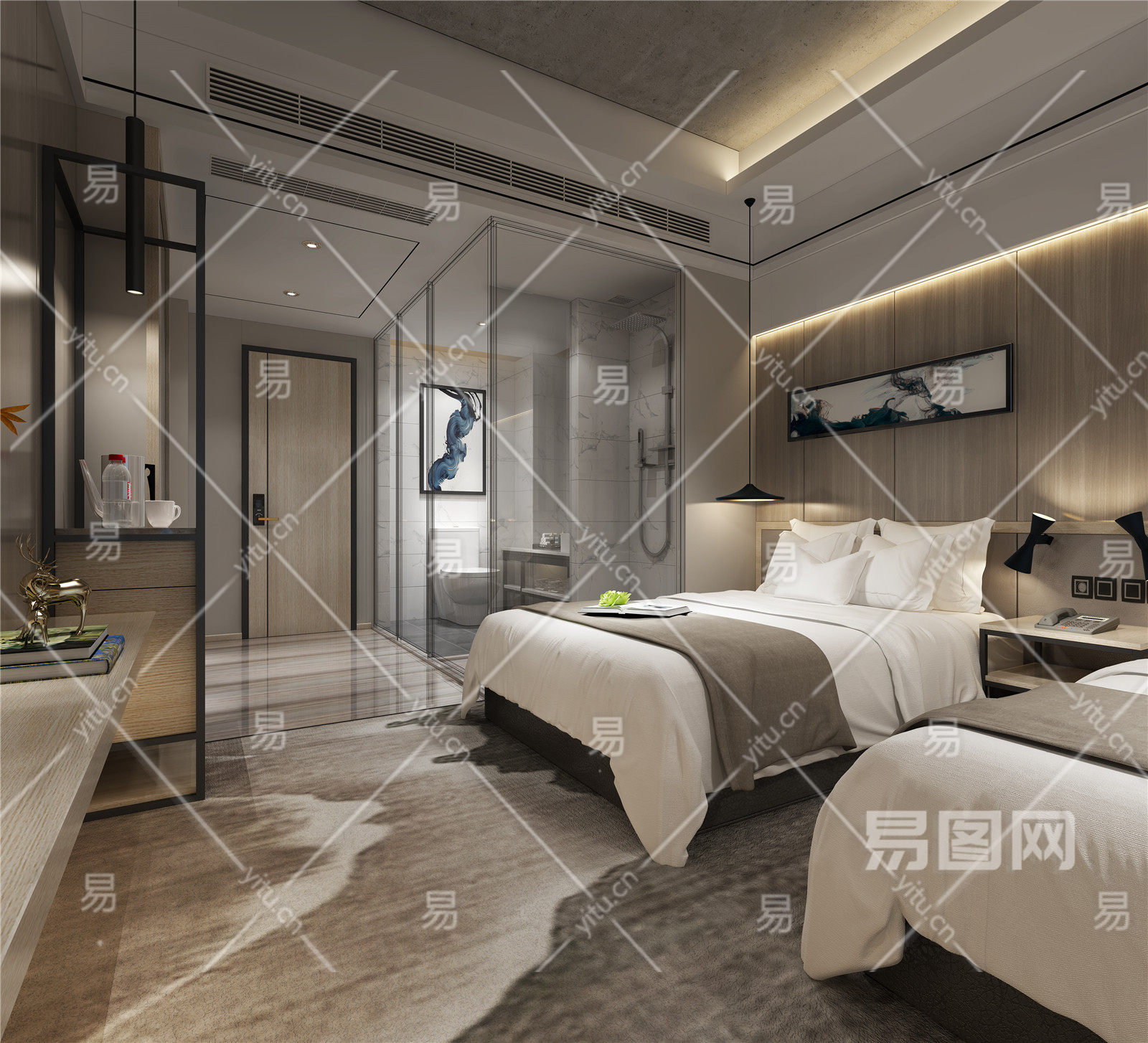现代酒店客房 酒店包间 酒店卫生间 酒店大床房 卧室