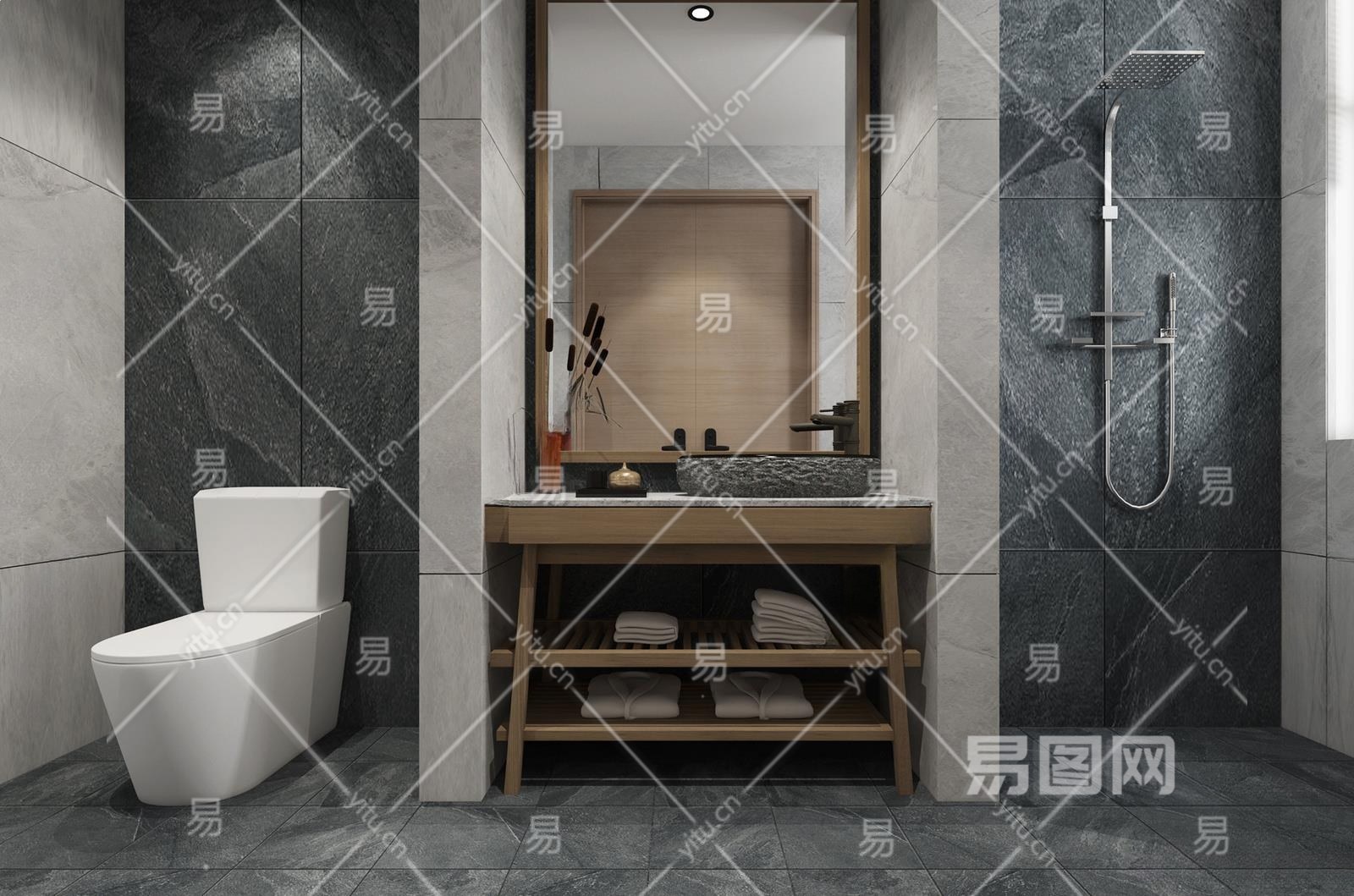 新中式民宿卫生间3D模型下载
