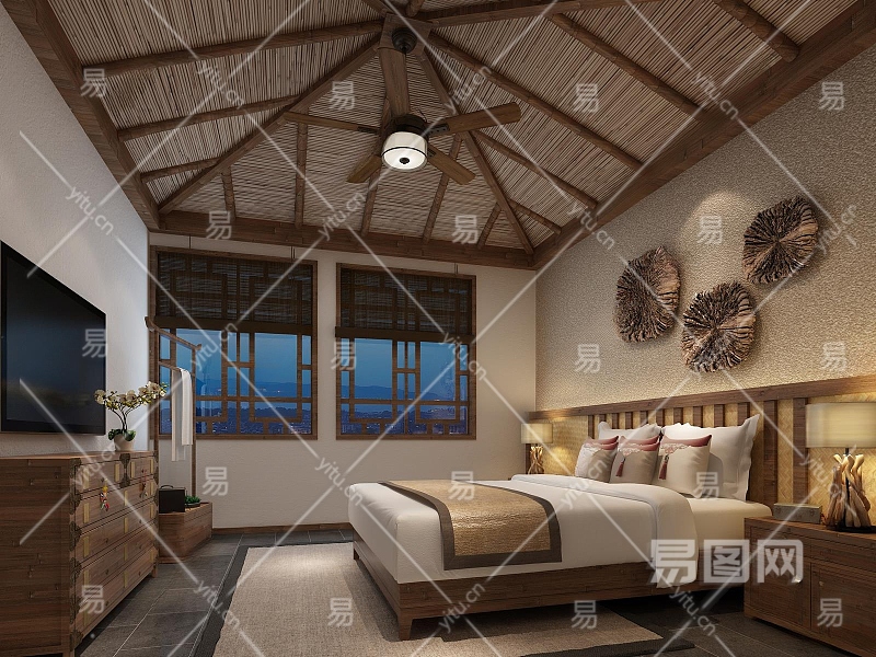 新中式民宿客房3D模型下载