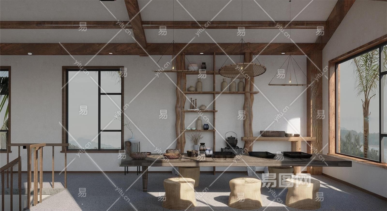 侘寂民宿茶室3D模型下载