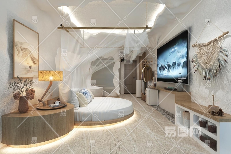 现代民宿客房3D模型下载