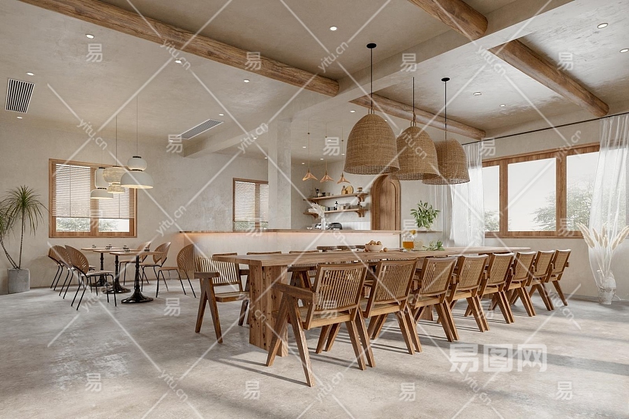 侘寂风民宿餐厅3D模型下载
