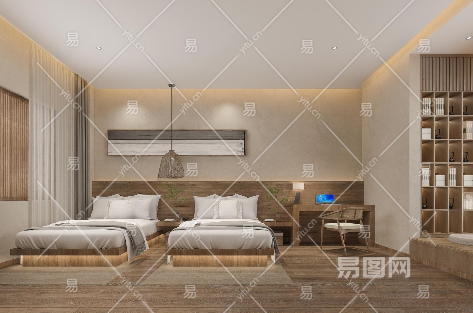 侘寂风民宿客房3D模型下载