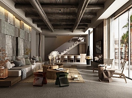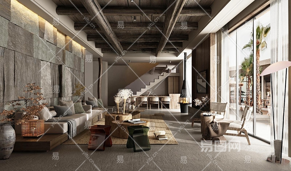 侘寂民宿客厅3D模型下载