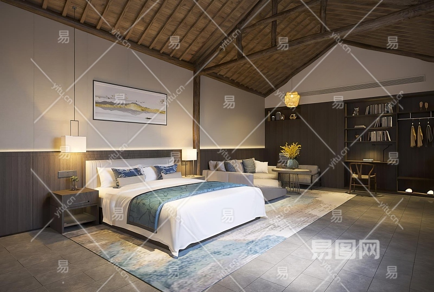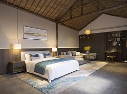 中式民宿客房3D模型下载