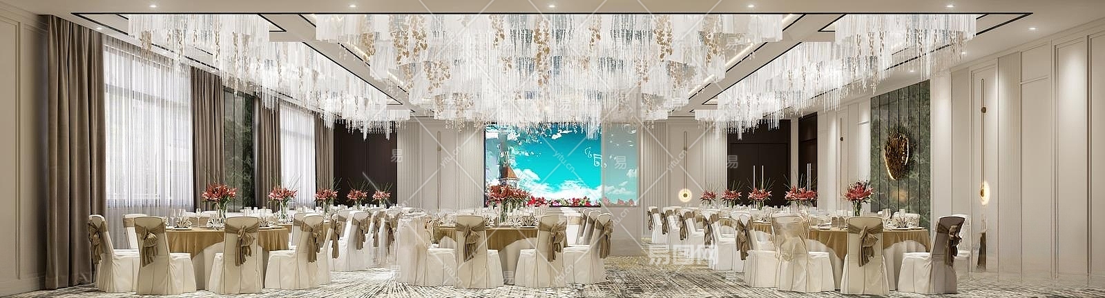 现代酒店宴会厅3D模型下载