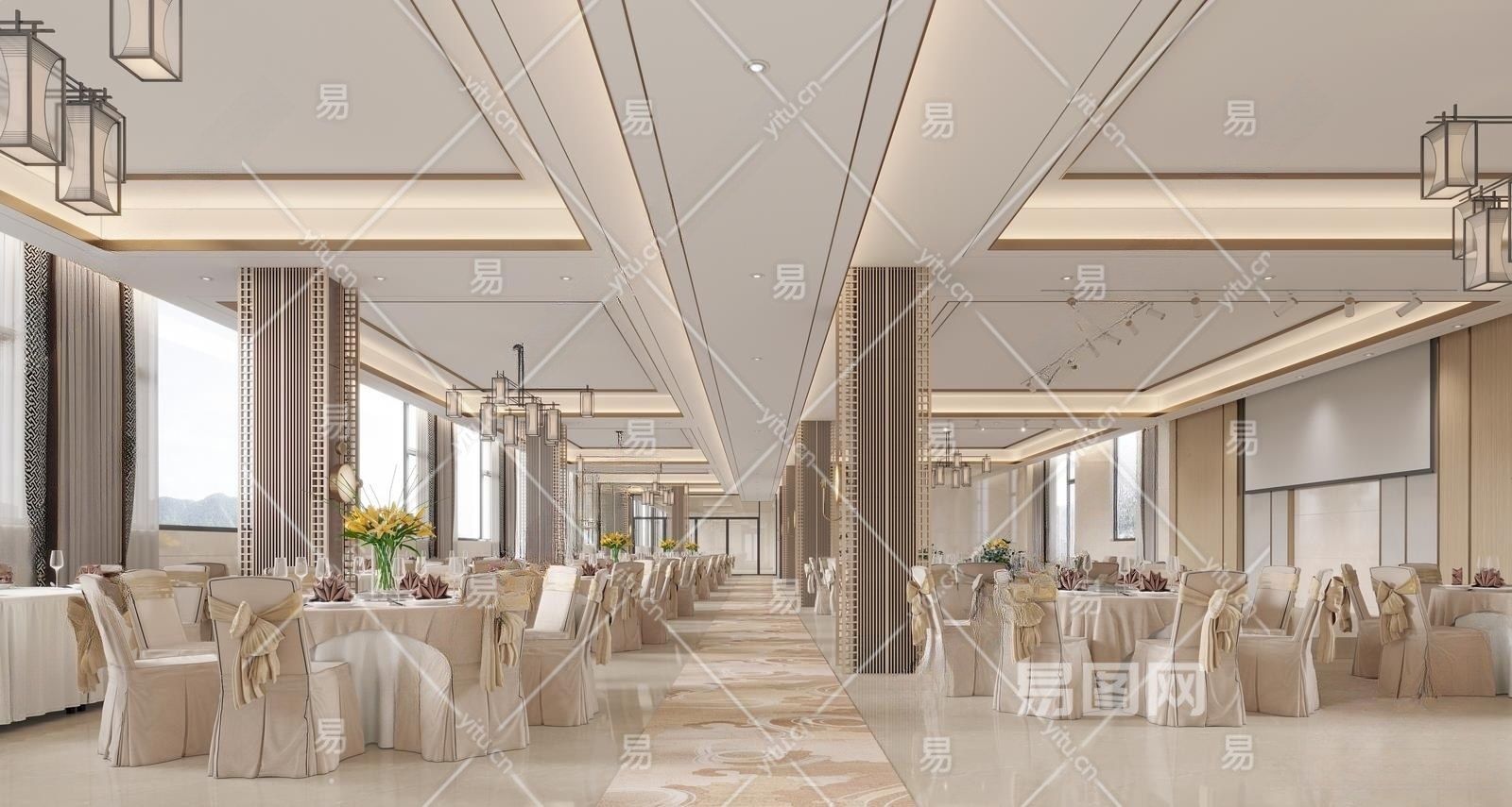 新中式酒店宴会厅3D模型下载