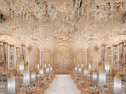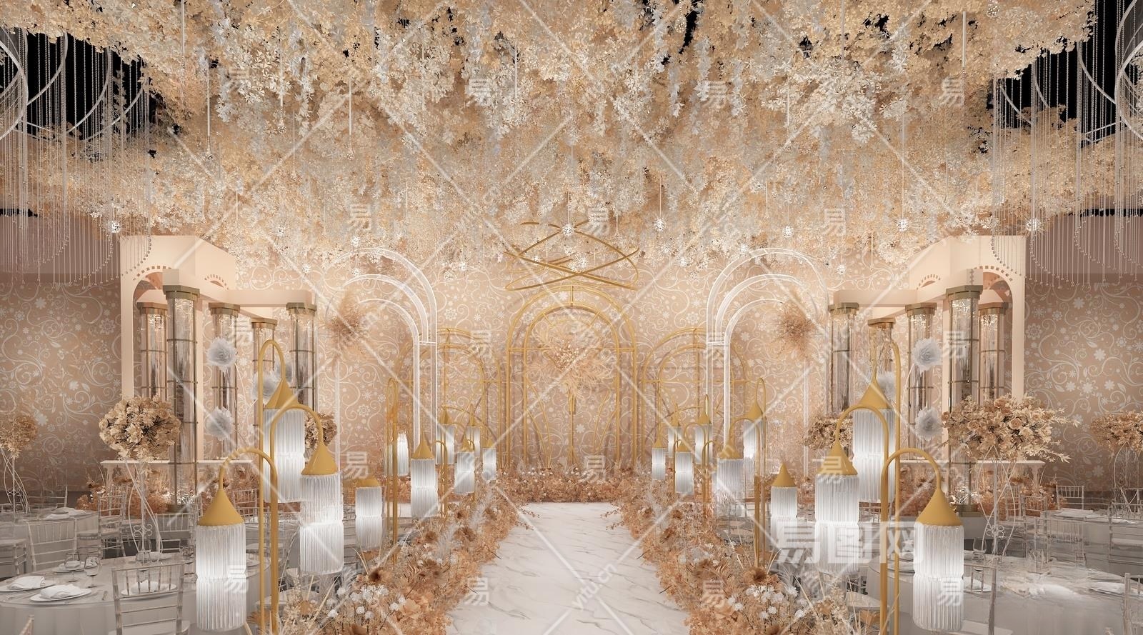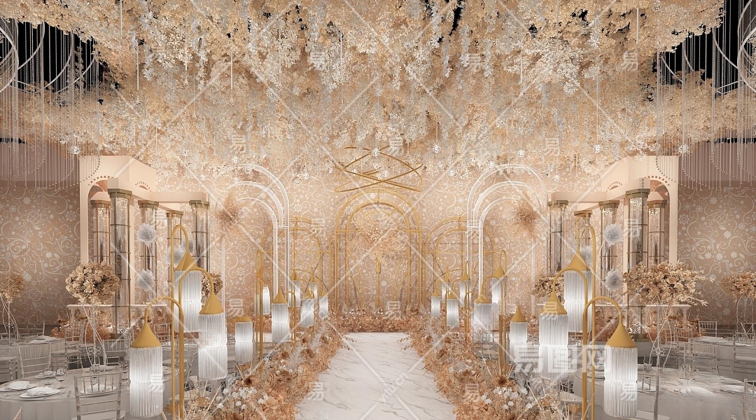 简欧香槟色婚礼宴会布置3D模型下载