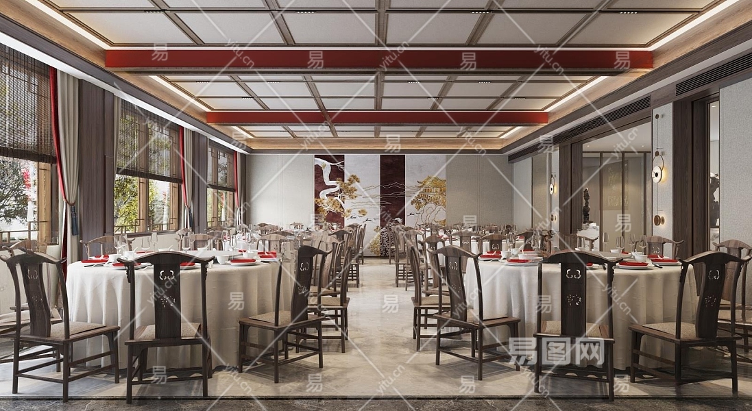 新中式酒店宴会厅3D模型下载