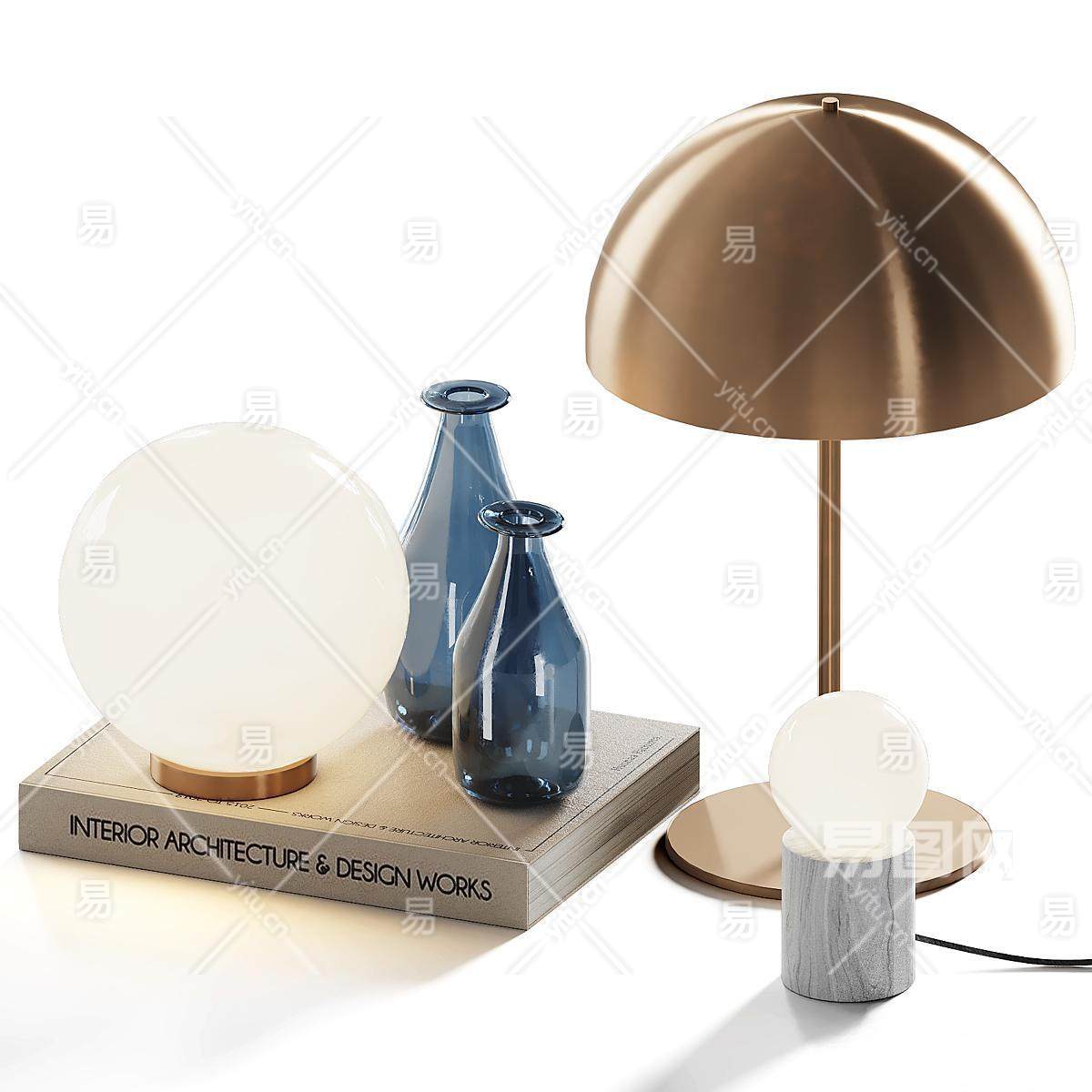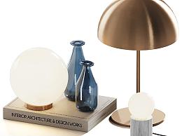 现代摆件组合 书籍 台灯