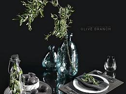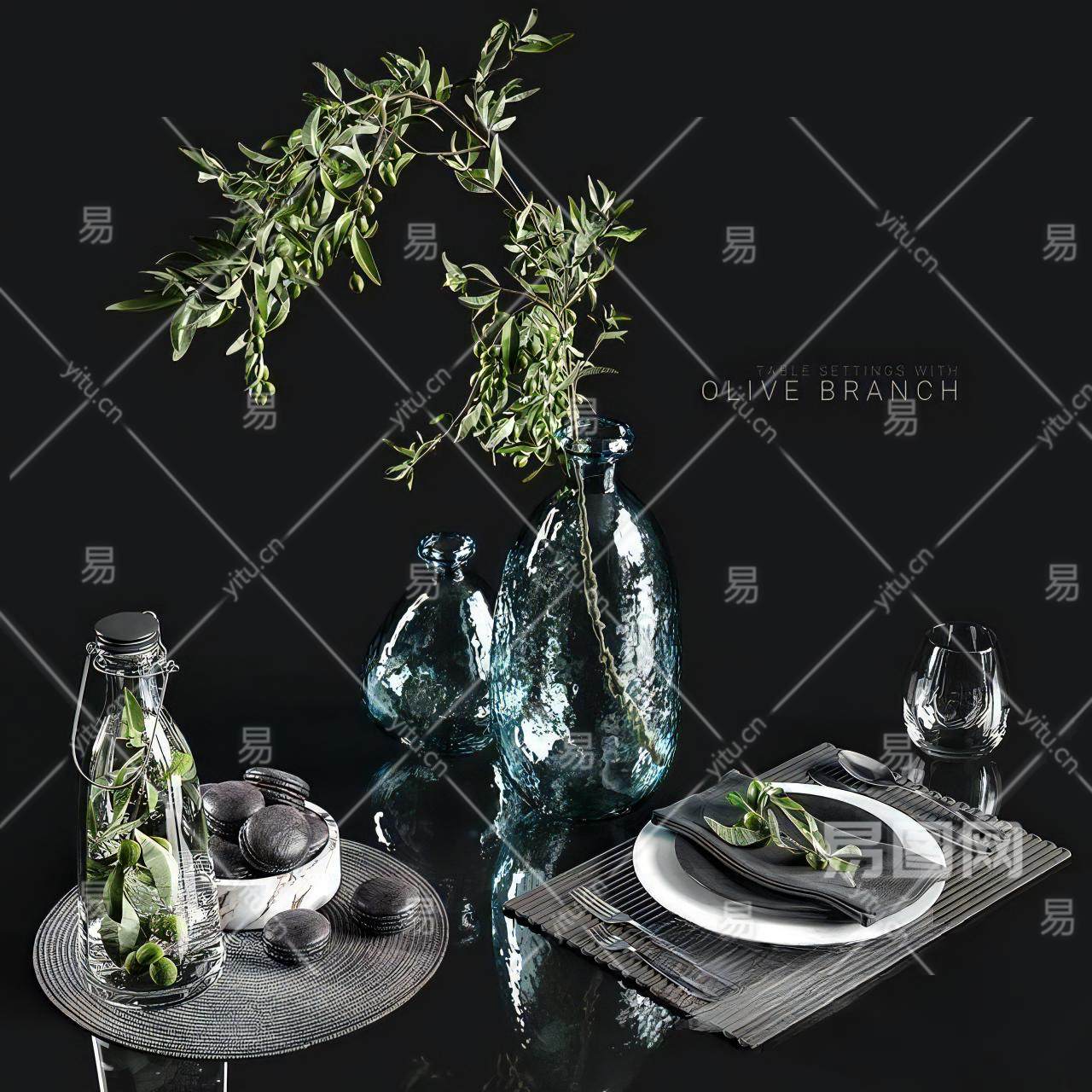 现代餐具组合 厨房装饰品 花瓶 餐具 盘子橄榄枝
