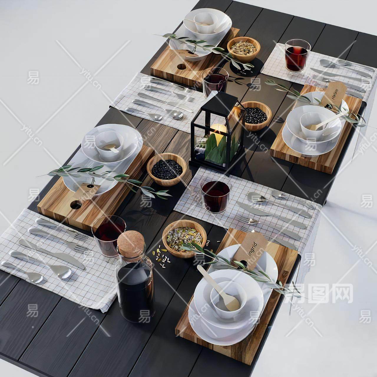 当前的位置:首页 > 3D模型 > 厨卫用品 > 餐具 > 现代实木餐桌餐具摆件组合