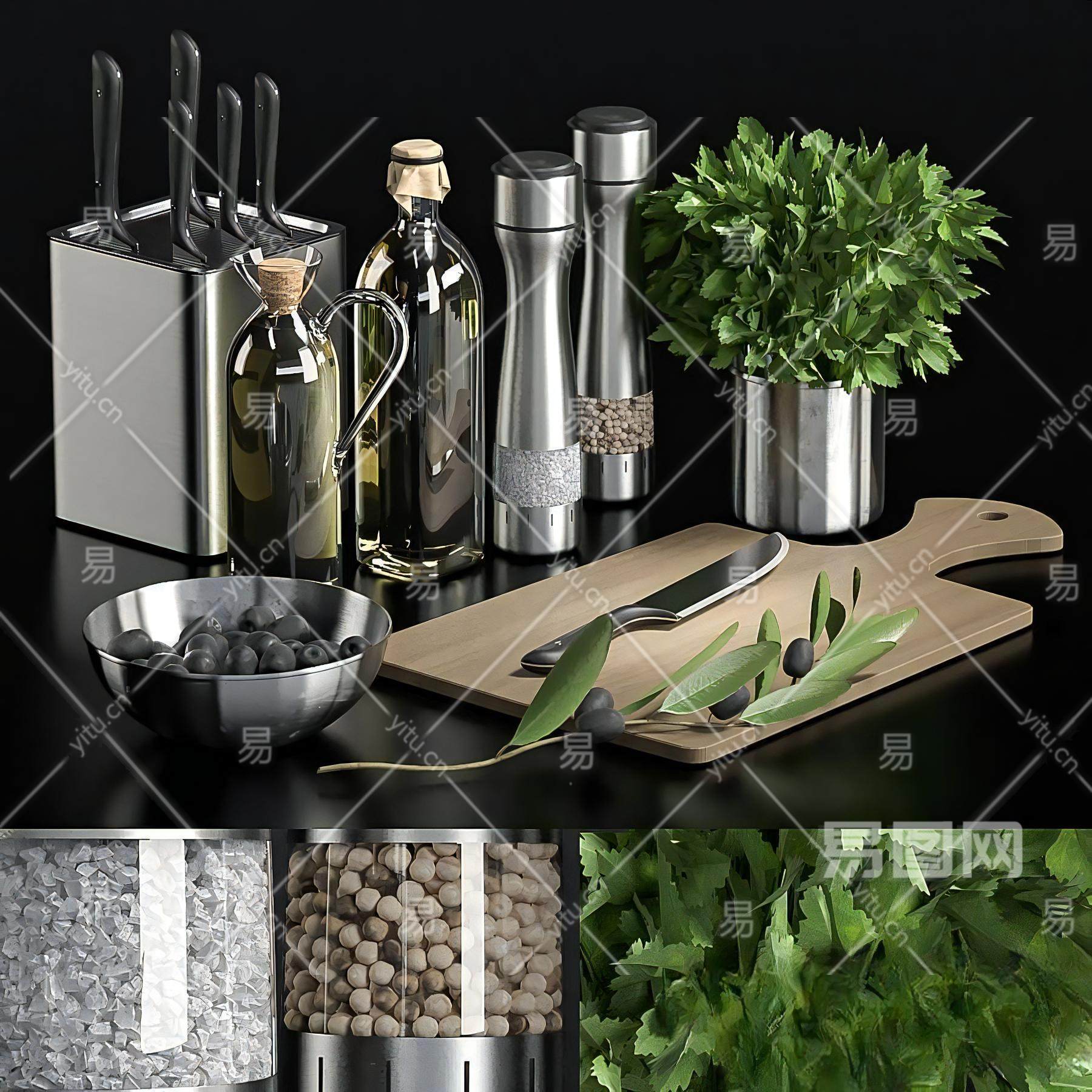 当前的位置:首页 > 3D模型 > 厨卫用品 > 厨房用品组合 > 厨房装饰套装-03