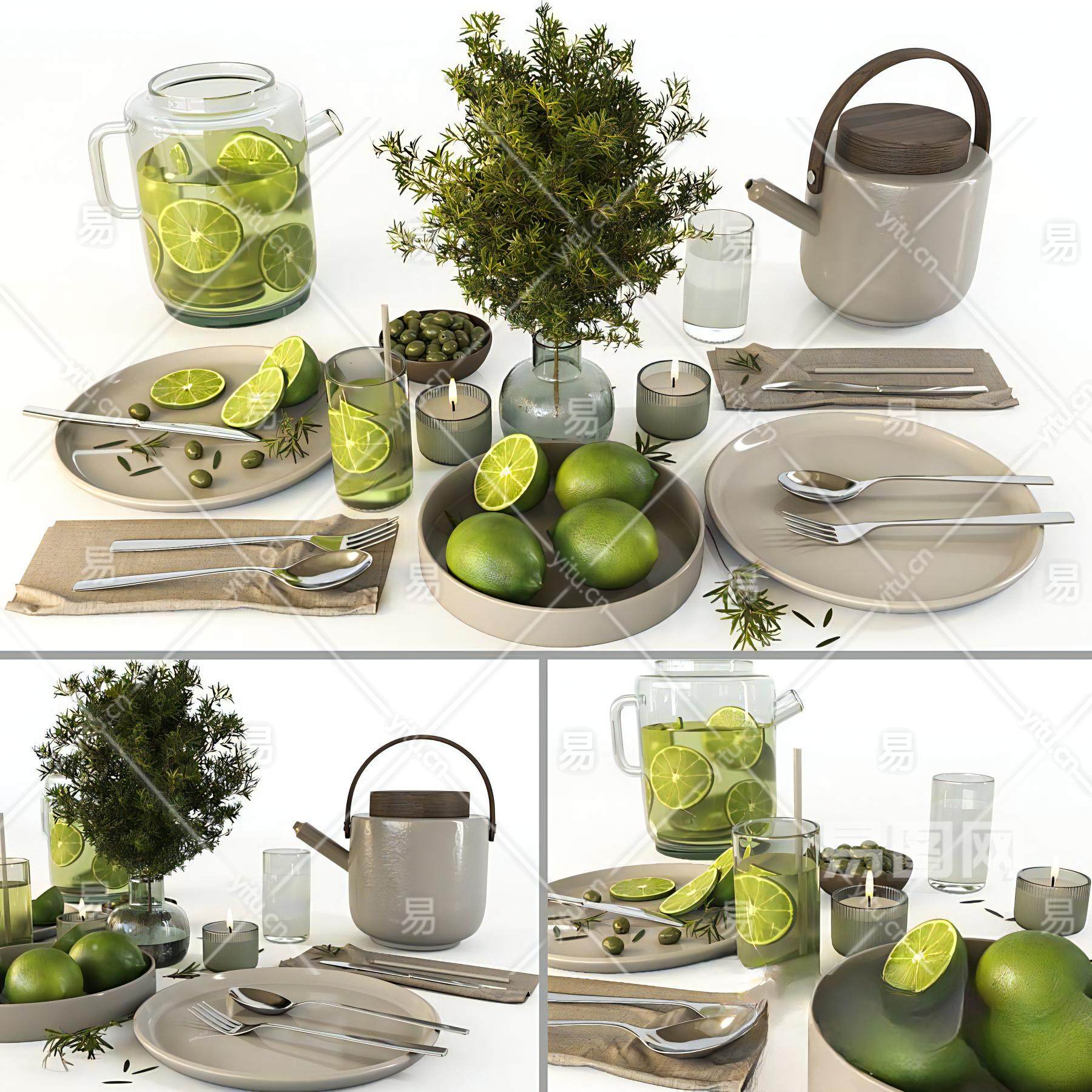 当前的位置:首页 > 3D模型 > 厨卫用品 > 厨房用品组合 > 现代餐桌餐具摆件