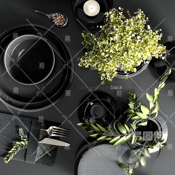 黑色餐具模型组