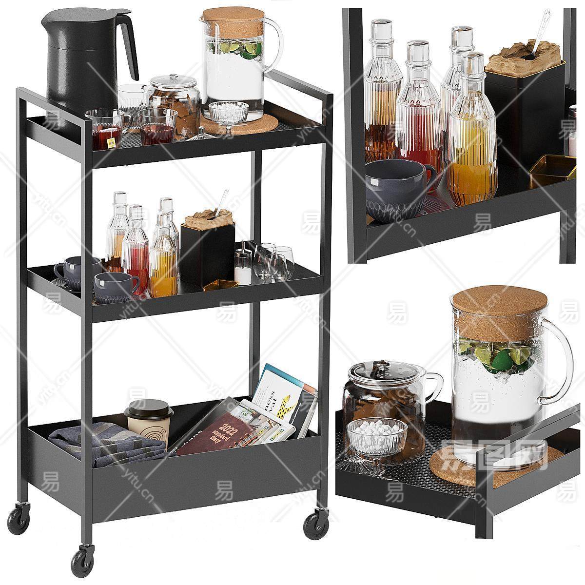 当前的位置:首页 > 3D模型 > 厨卫用品 > 厨房用品组合 > 推餐车 餐具