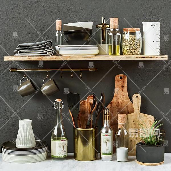 当前的位置:首页 > 3D模型 > 厨卫用品 > 厨房用品组合 > 现代简约厨房摆件 装饰品