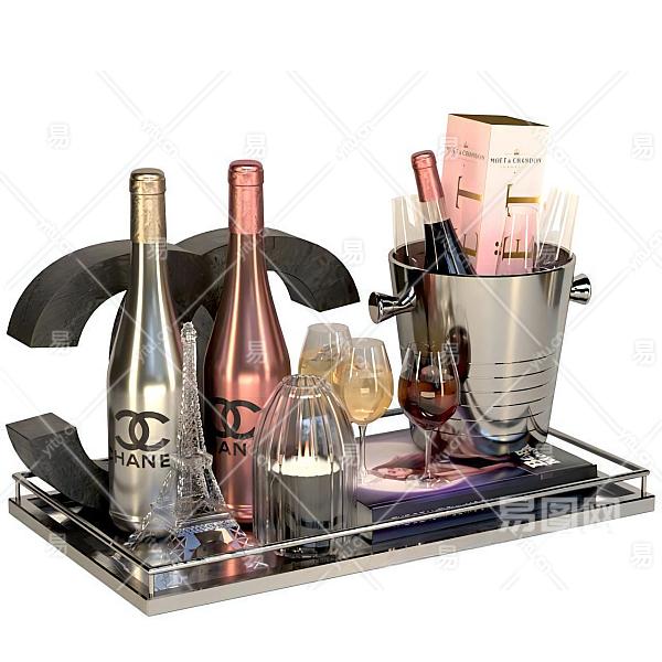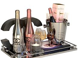 现代酒瓶酒杯组合