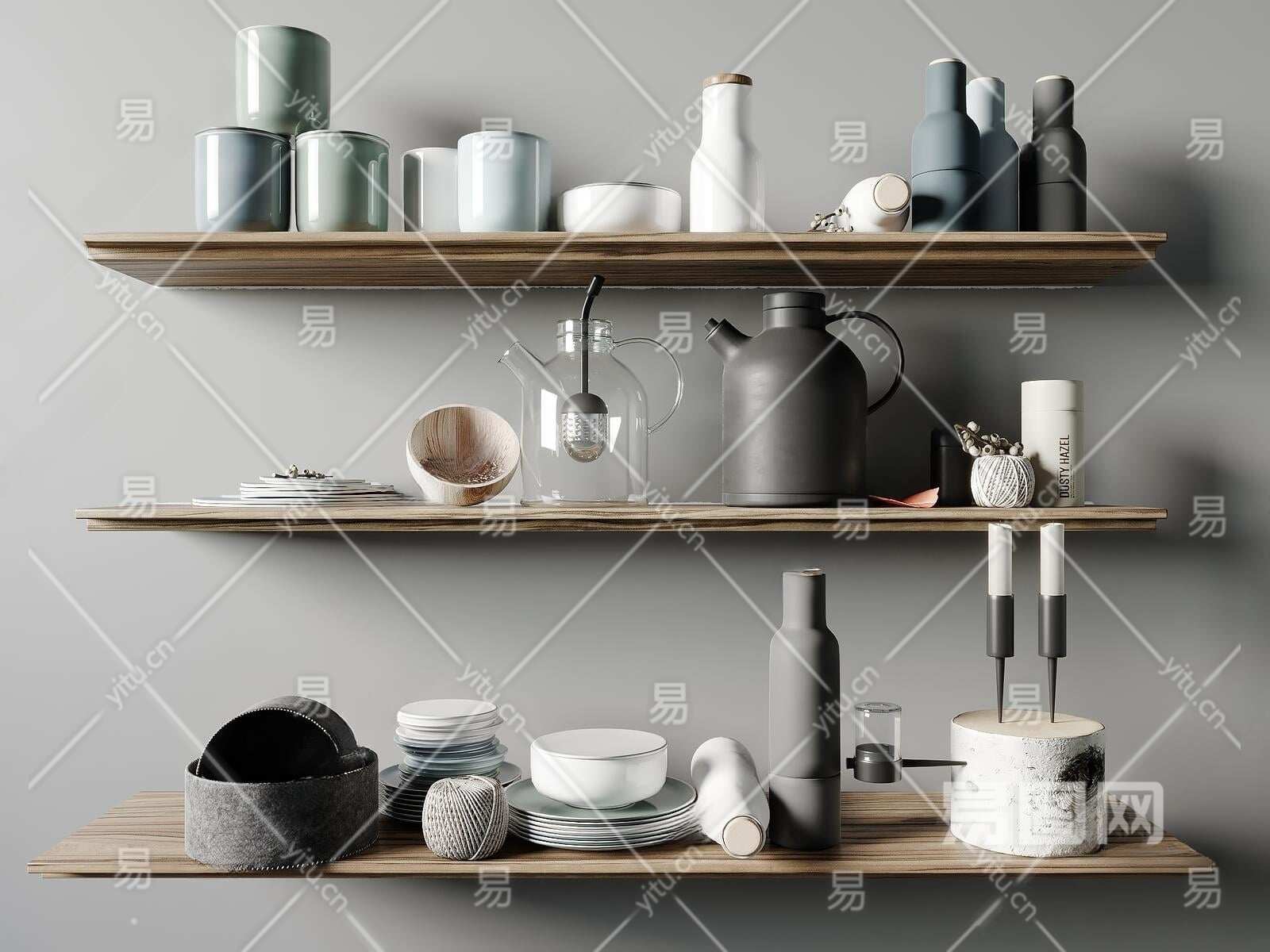 现代厨房用品3D模型下载