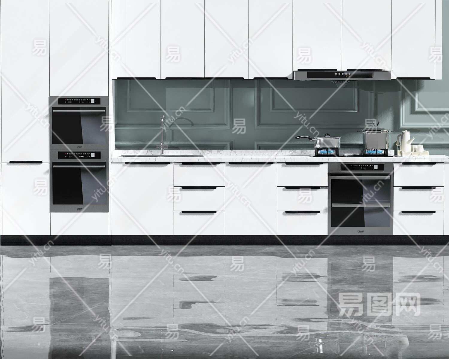 现代厨房壁柜3D模型下载