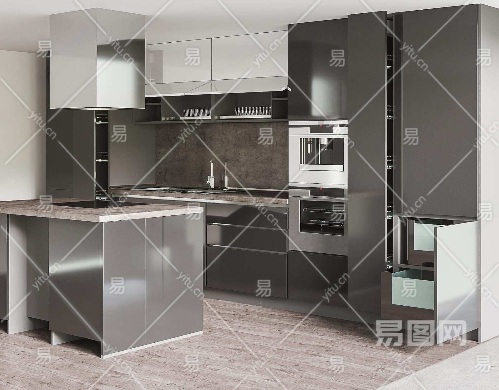 现代橱柜组合3D模型下载