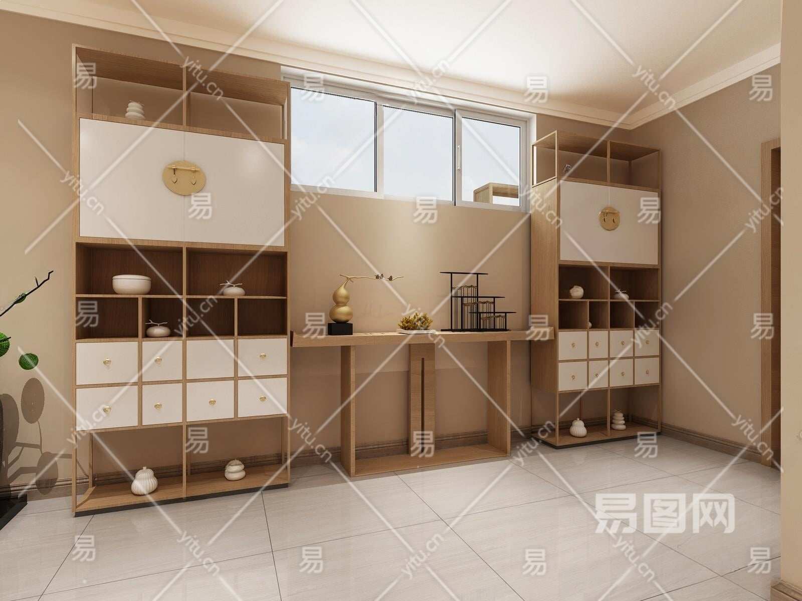 日式橱柜组合3D模型下载