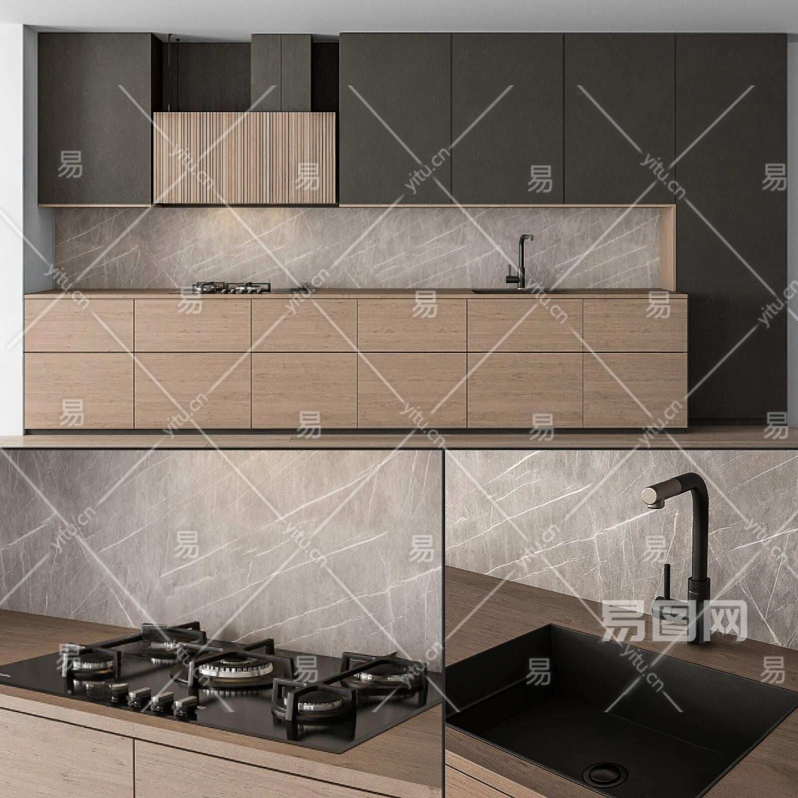 现代厨房橱柜3D模型下载