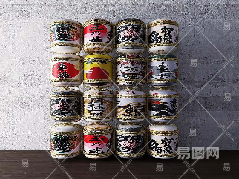 日式酒桶3D模型下载