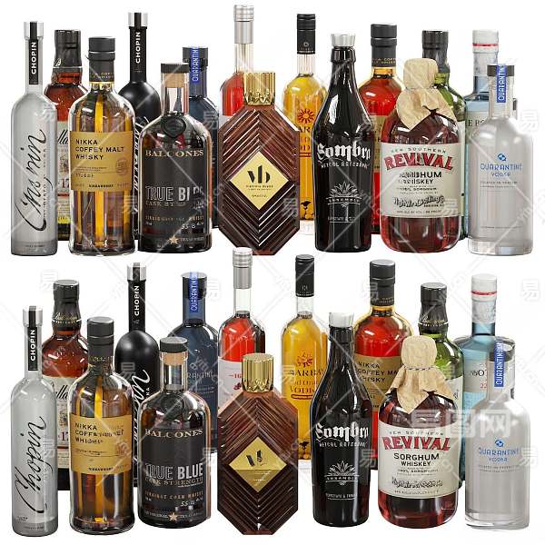 现代酒水酒瓶组合3D模型下载