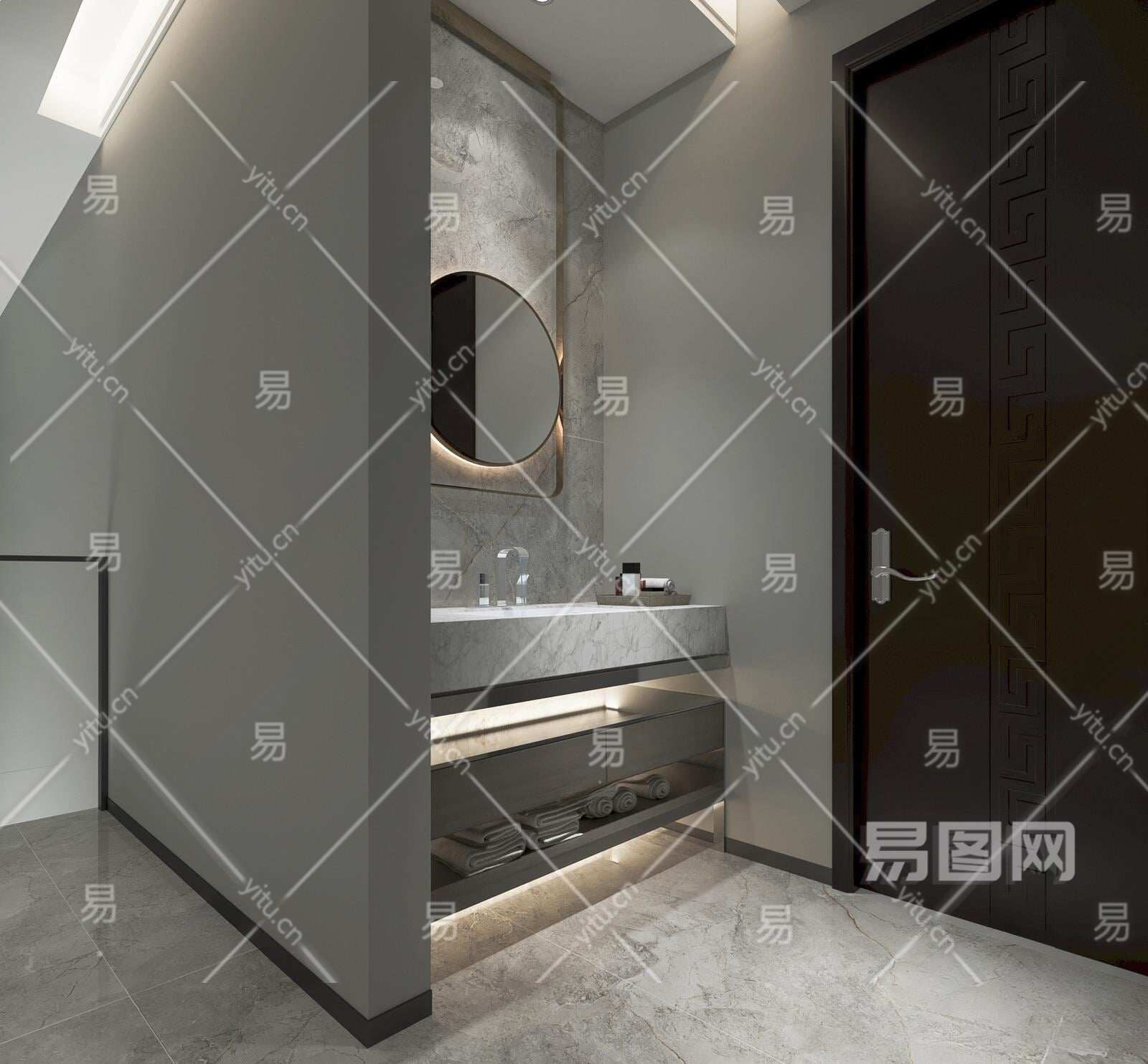 现代洗手台盆3D模型下载