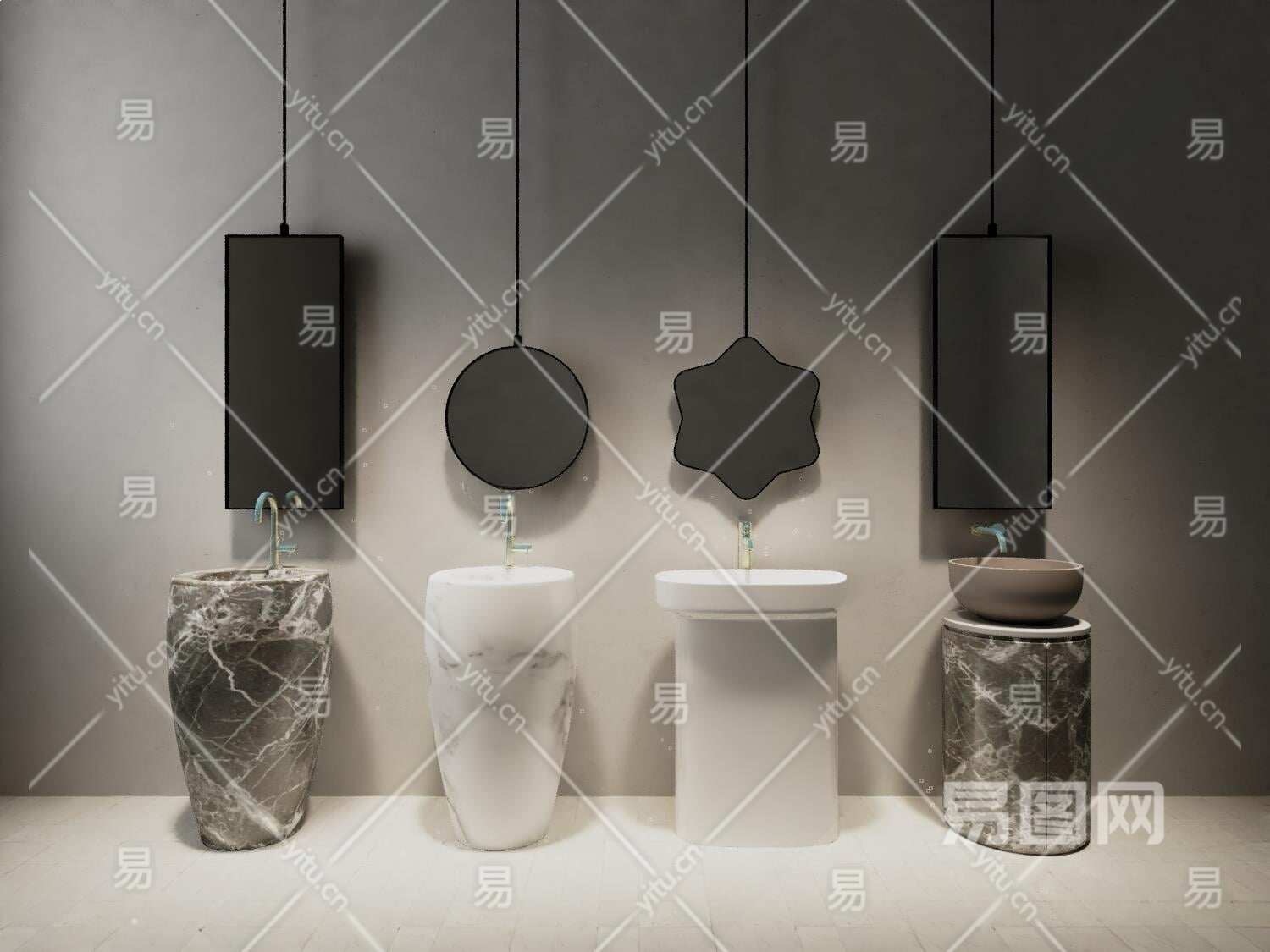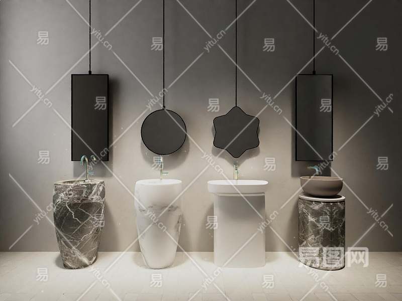 现代洗手台盆3D模型下载