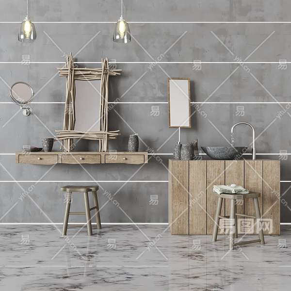 侘寂洗浴用品组合3D模型下载