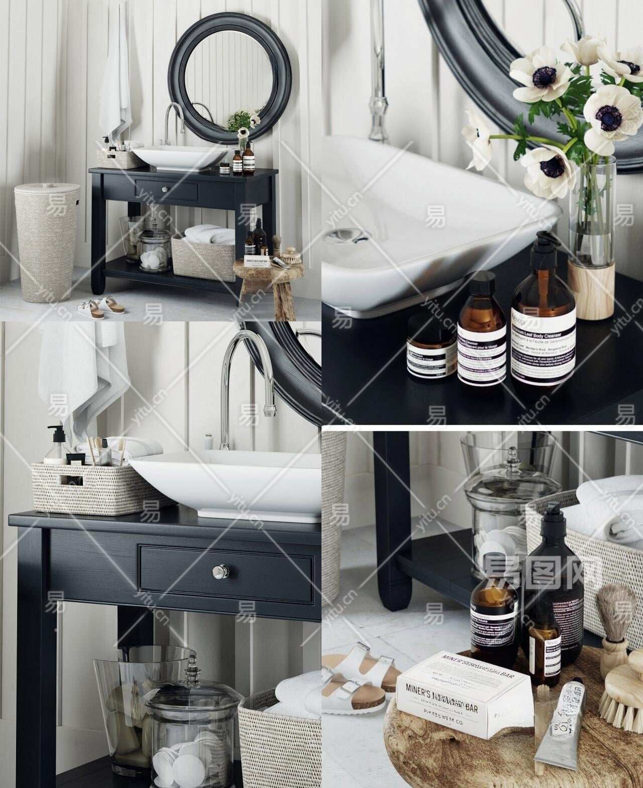 现代卫浴用品洗手盆组合3D模型下载