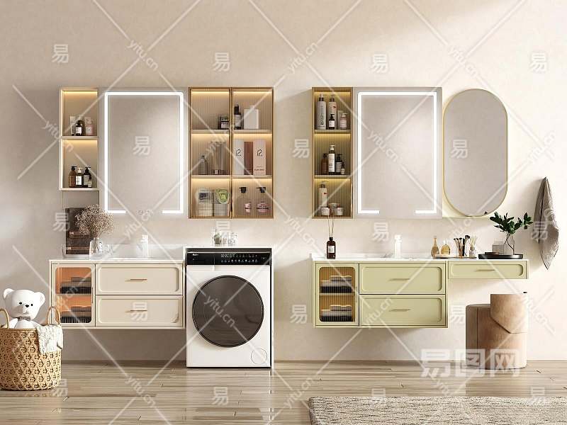 现代奶油风浴室柜3D模型下载