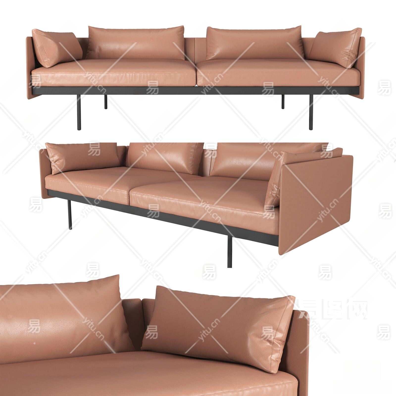 现代皮革皮质双人沙发3D模型下载