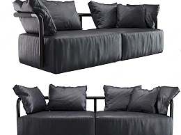 现代黑色皮革双人沙发3D模型下载