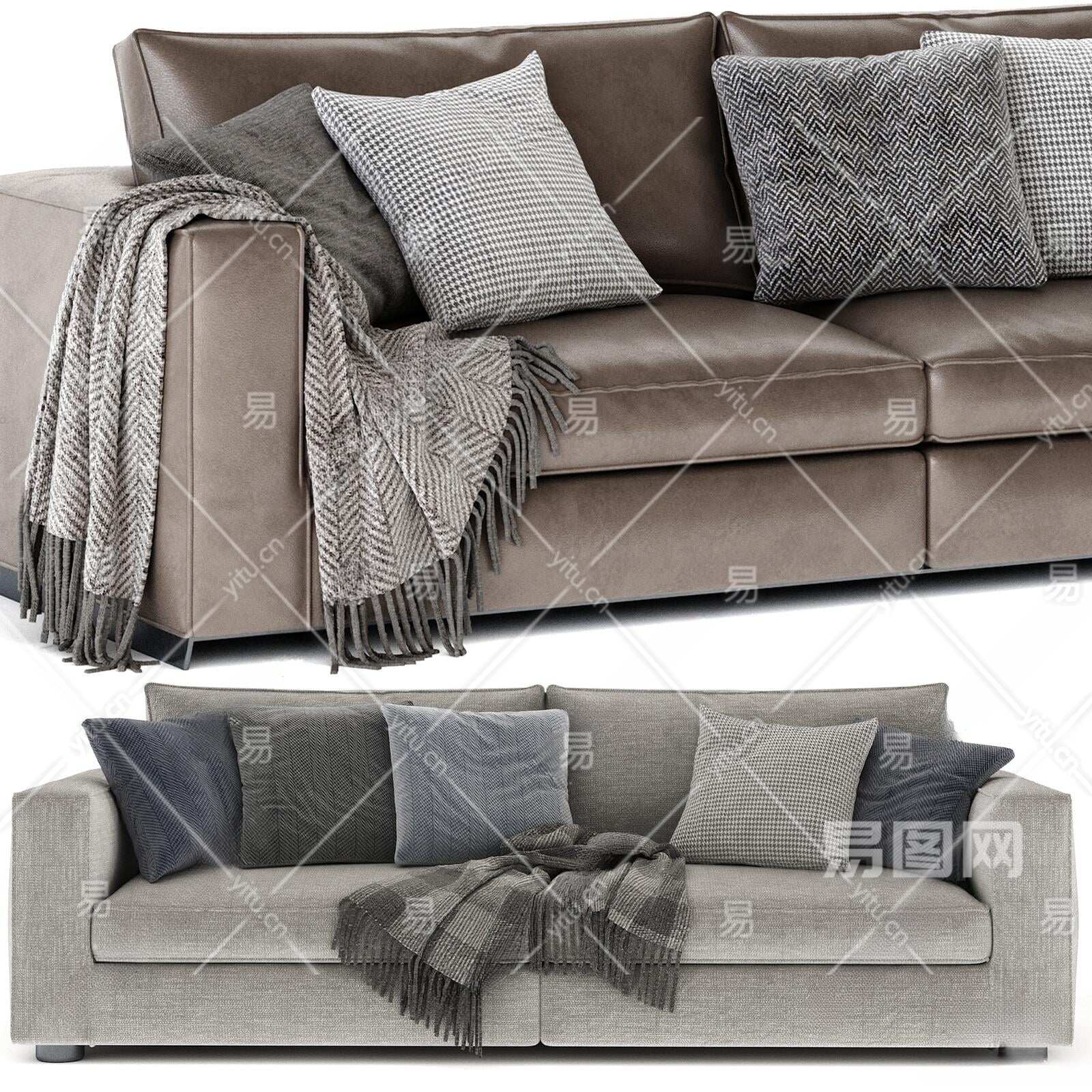 现代布艺双人沙发3D模型下载