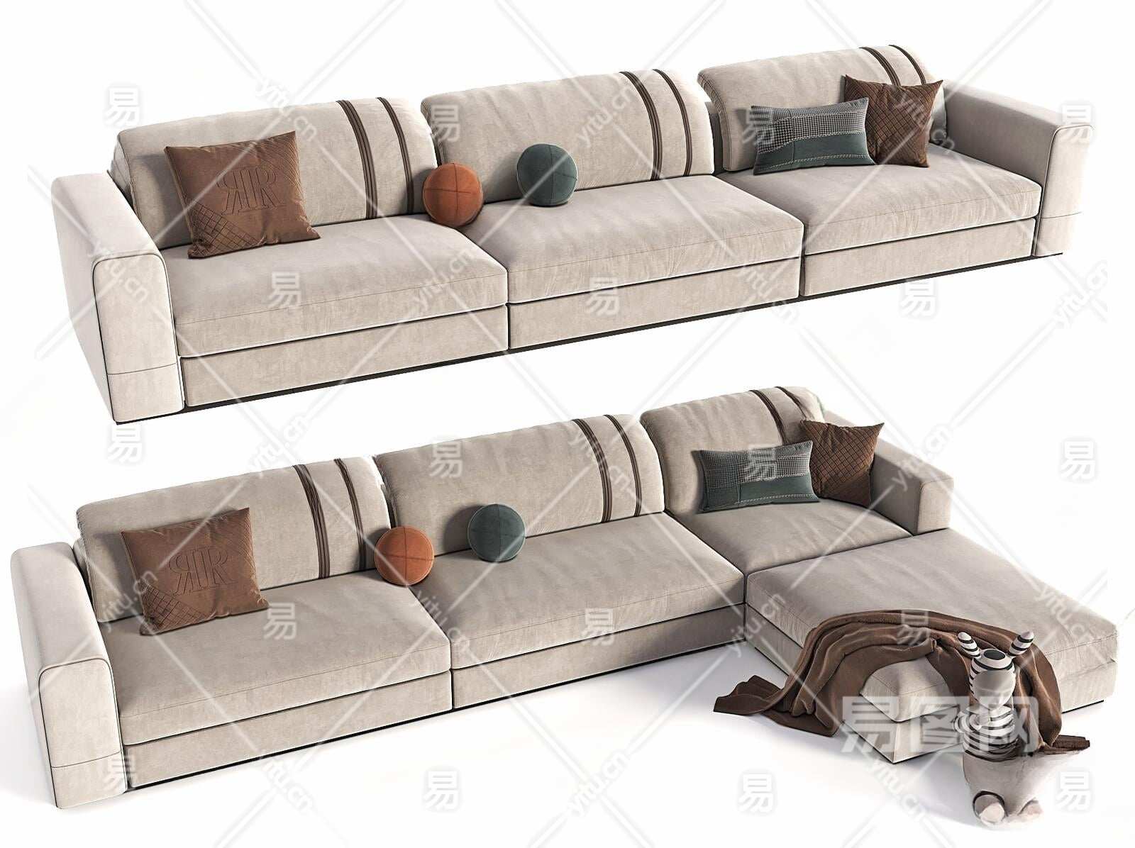 现代多人沙发3D模型下载