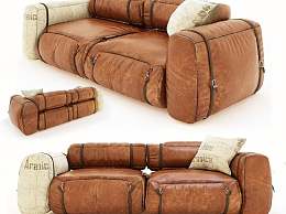 工业风皮革休闲双人沙发3D模型下载