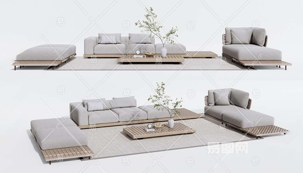 现代户外沙发茶几3D模型下载