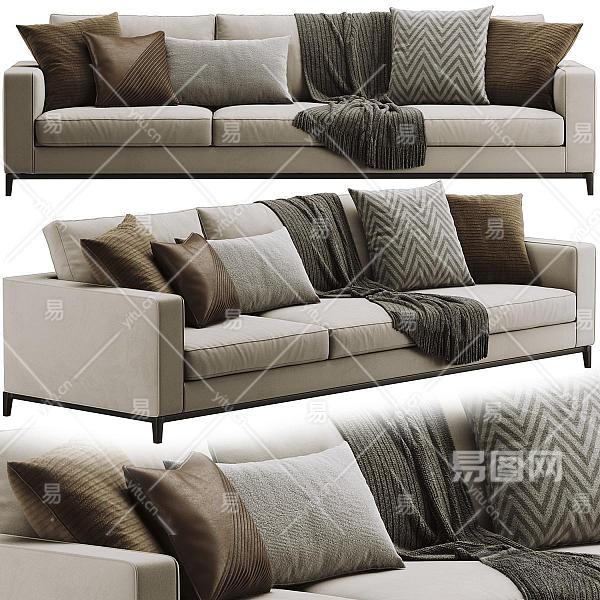 MINOTTI现代布艺多人沙发 抱枕毯子