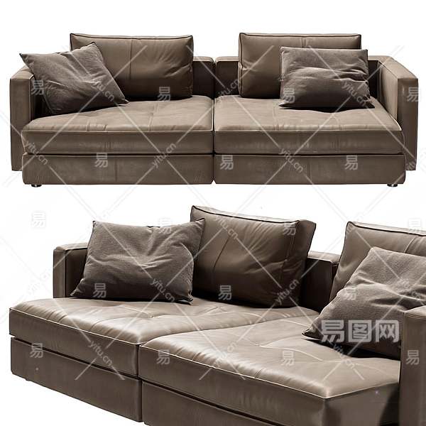 POLTRONA FRA现代皮革双人沙发3D模型下载