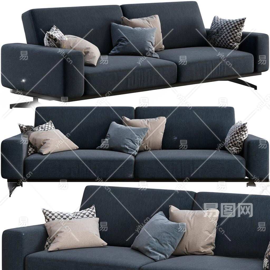 现代布艺多人沙发3D模型下载