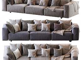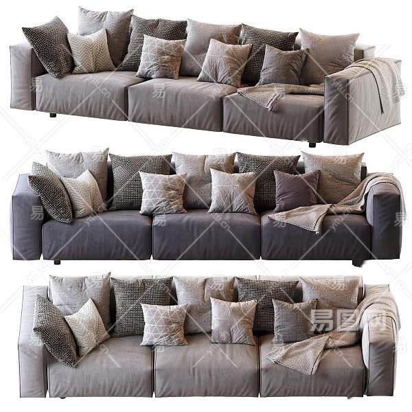 现代布艺多人沙发3D模型下载