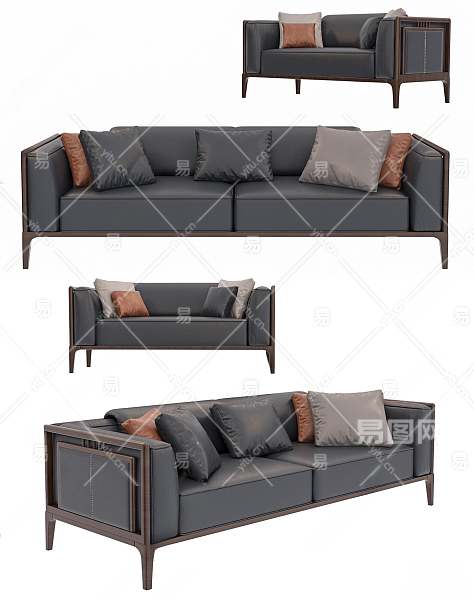 新中式组合沙发3D模型下载