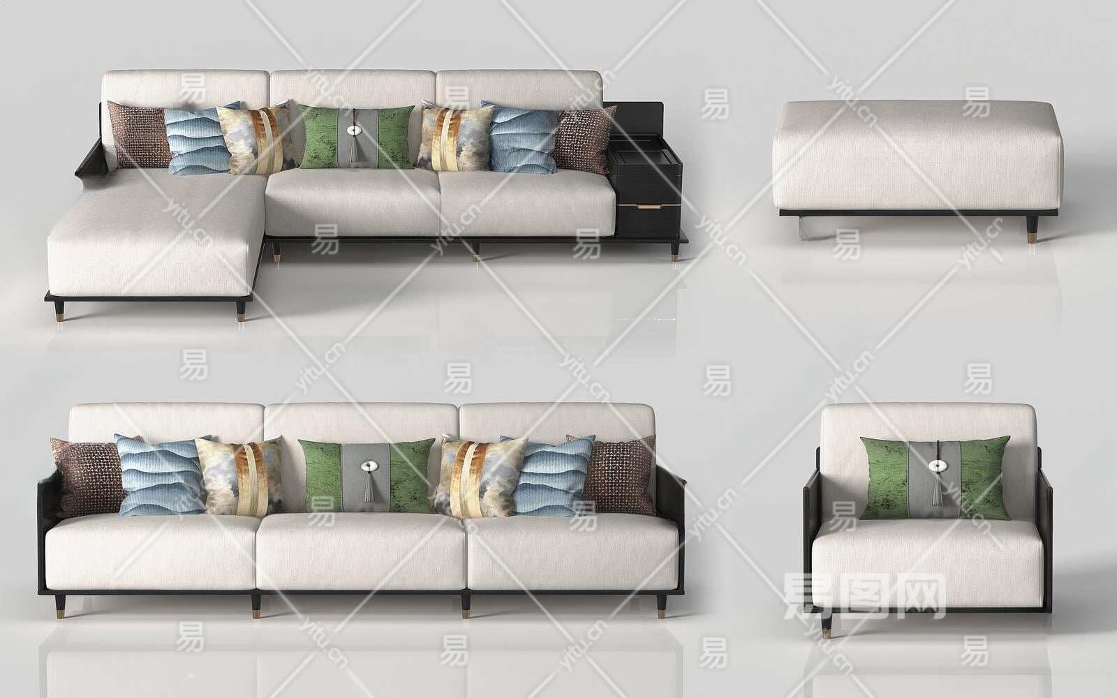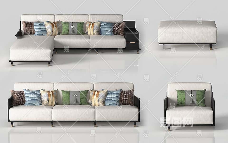 新中式组合沙发3D模型下载