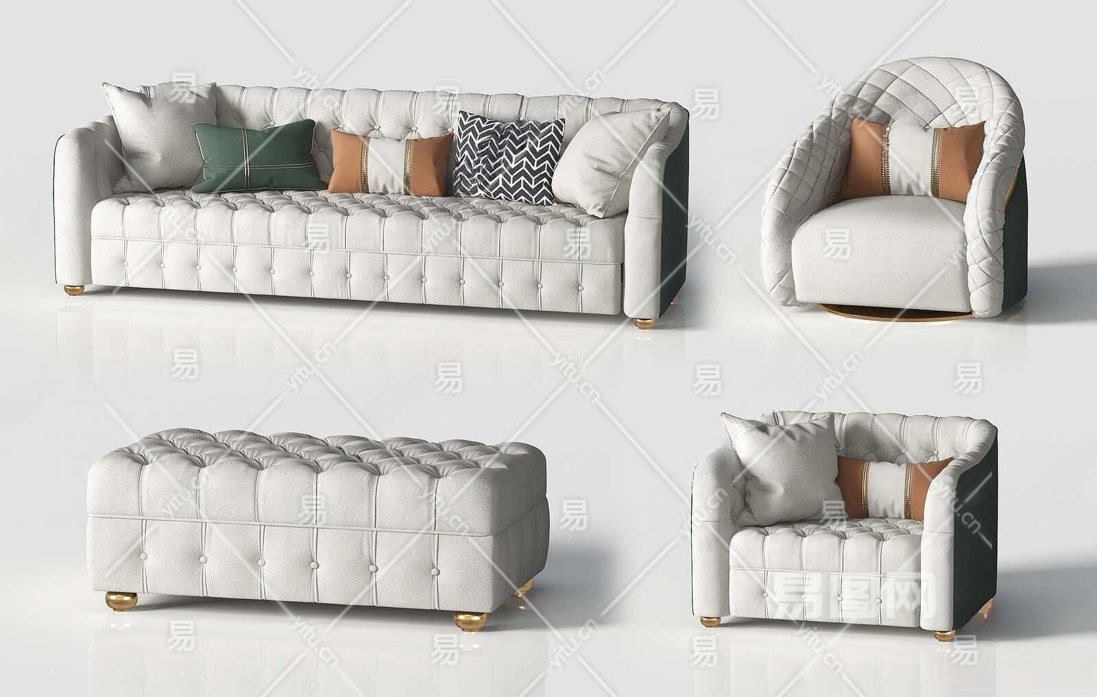 简欧组合沙发3D模型下载