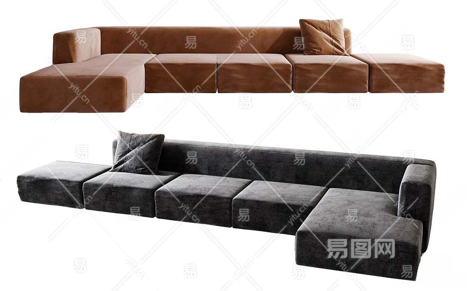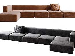 现代布艺多人沙发3D模型下载